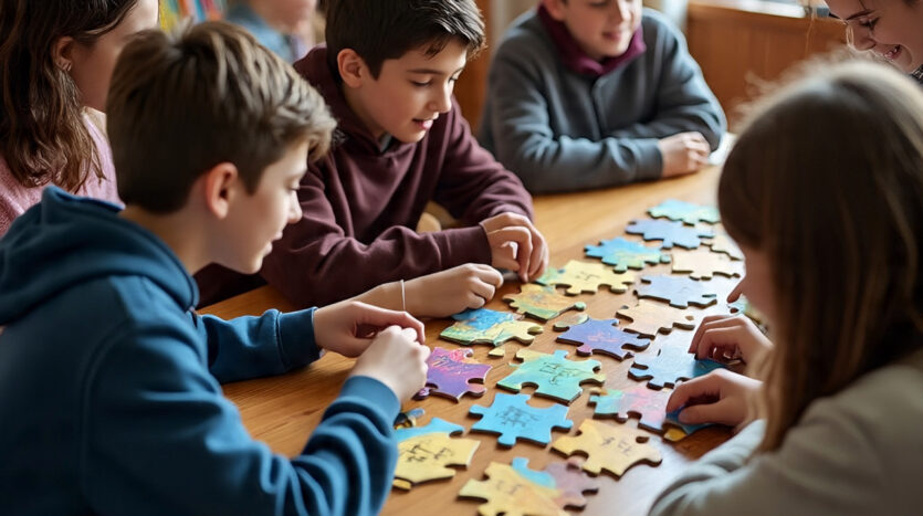 At the coordinator’s signal, the groups must start putting the pieces together and try to complete the passage in the correct order according to the Bible.